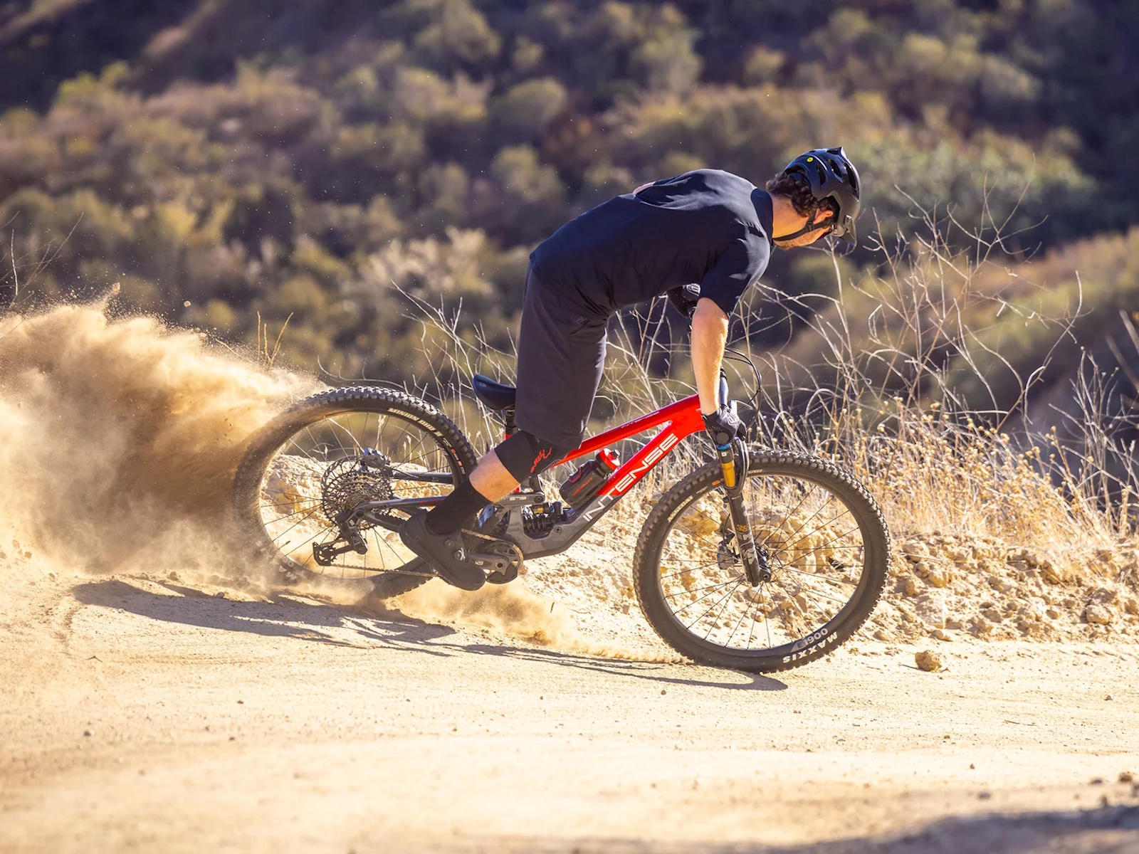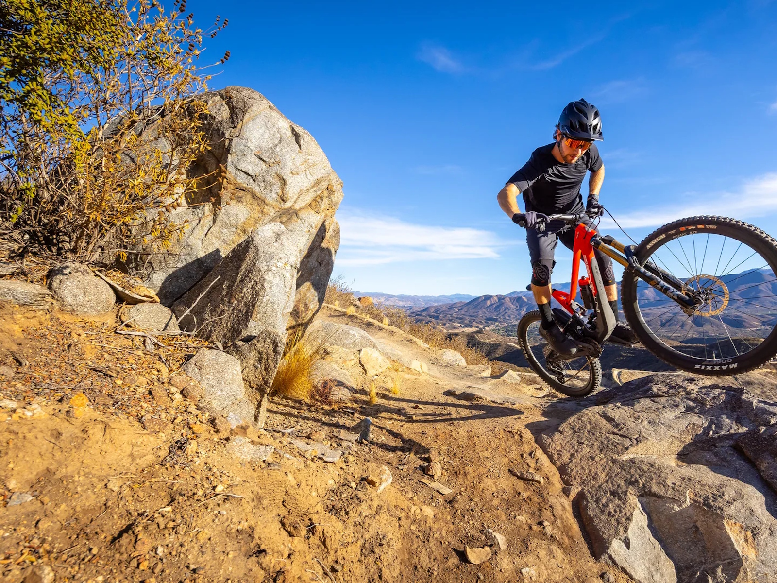 - The bottom-link-driven rear shock provides a firm pedaling platform and lowers the center of gravity, offering exceptional stability and control on descents.