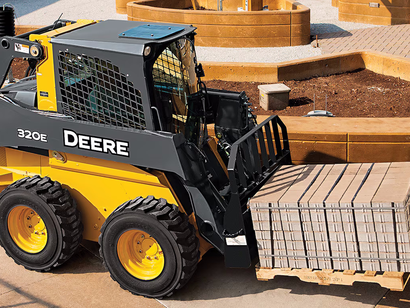 Skid-resistant steps on both sides of the pallet-fork frame ease entrance and exit. Severe-duty pallet forks offer increased capacity and durability over the previous fork-frame design. These pallet forks are optimized to work with John Deere G- and E-Series Skid Steers and Compact Track Loaders, and P-Tier, G-Tier, and K-Series Compact Wheel Loaders, and are compatible with most competitive models.