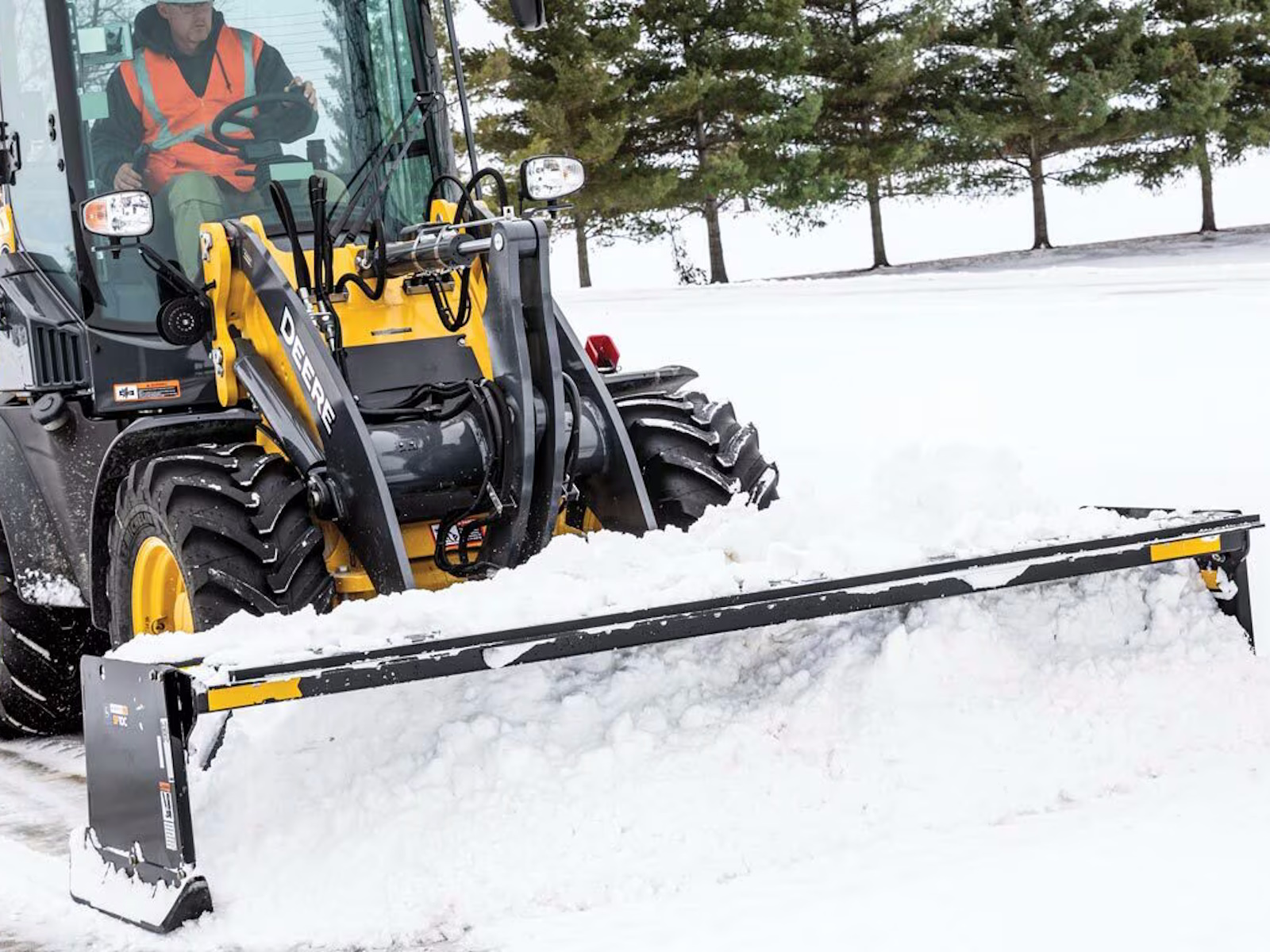 Quickly and efficiently remove large accumulations of snow from sidewalks, parking lots, and driveways. Reversible and replaceable rubber cutting edges. Optional pullback edge is ideal for opening up confined areas and work around vehicles, buildings, fences, or other obstructions. Like all John Deere attachments, these snow blowers are optimized to work with John Deere skid steer loaders, compact track loaders, and compact wheel loaders. They’re also compatible with many competitive models.