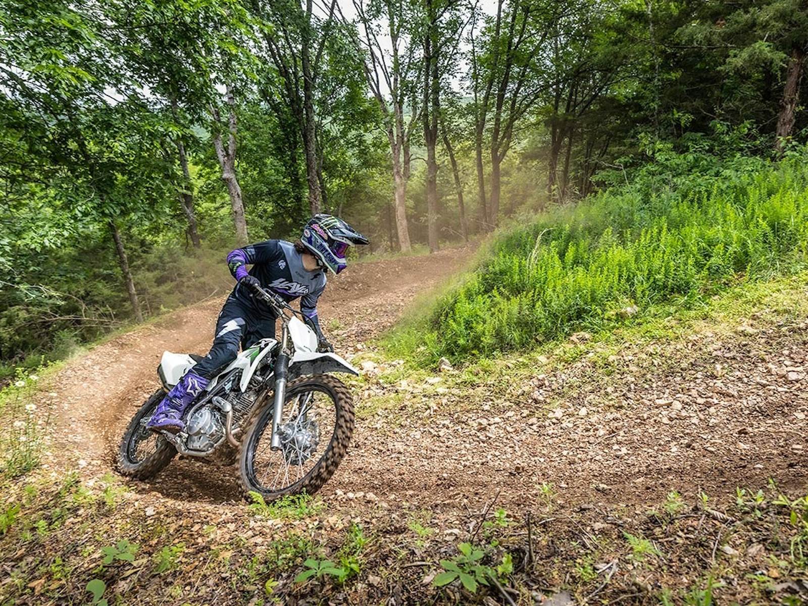 The full-size fun of the KLX®230R trail bike means it's time to Get Out And Play. Take on terrain with nimble handling and plenty of power, while kicking up some serious dirt along the way. Long-travel suspension paired with responsive low-speed control give this bike a sporty feel that stands out among the rest. Finished with styling inspired by the KX™ lineup, the highly capable, lightweight package of the KLX230R brings a heavy dose of fun to every off-road ride.