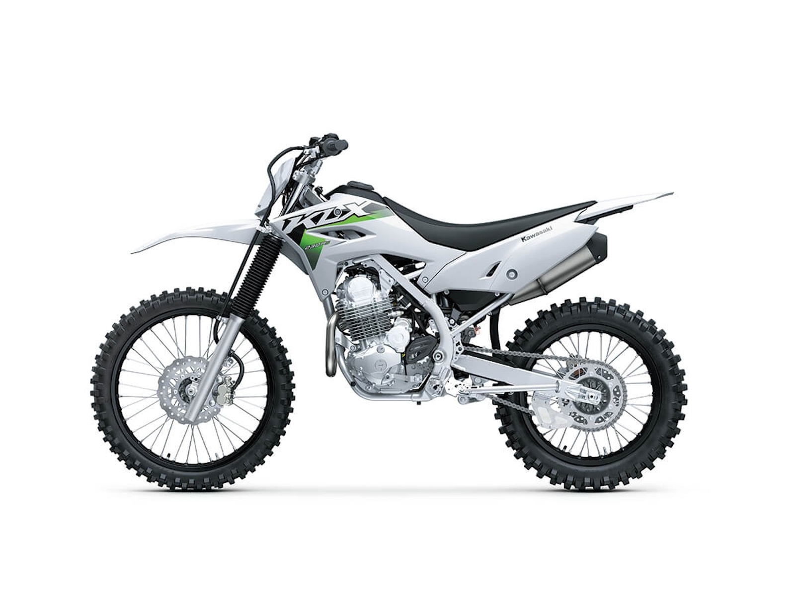 - Lower seat height than KLX®230R (34.4-in vs. 35.6-in)