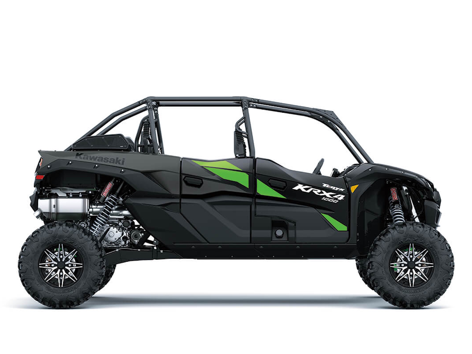 Dominate Adventure with more friends and family with 4-passenger seating on the new Teryx® KRX4™ 1000. With an enlarged chassis, no sacrifices were made to accommodate the additional passengers. Advanced suspension technology combined with beefy wheels and tires deliver the ultimate riding experience. The Teryx KRX4 1000 reinforces and elevates the reputation of purpose-built Kawasaki sport side x sides.