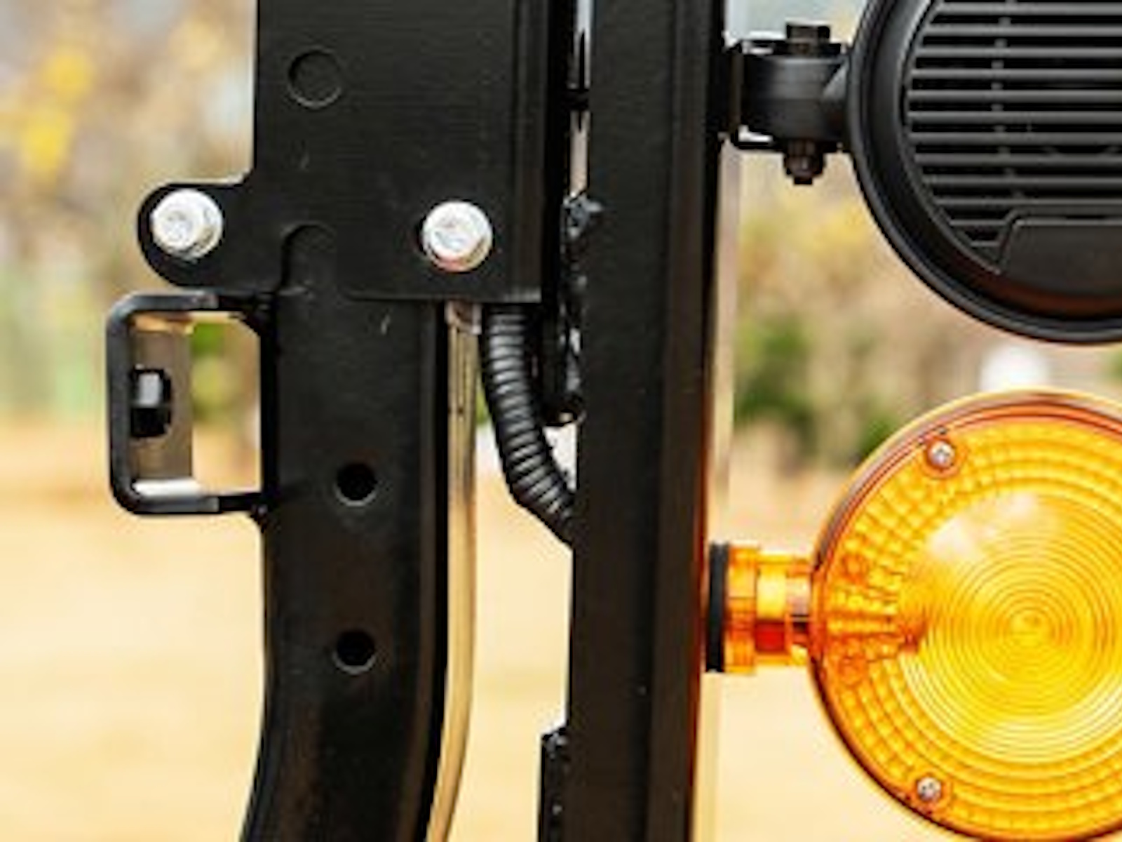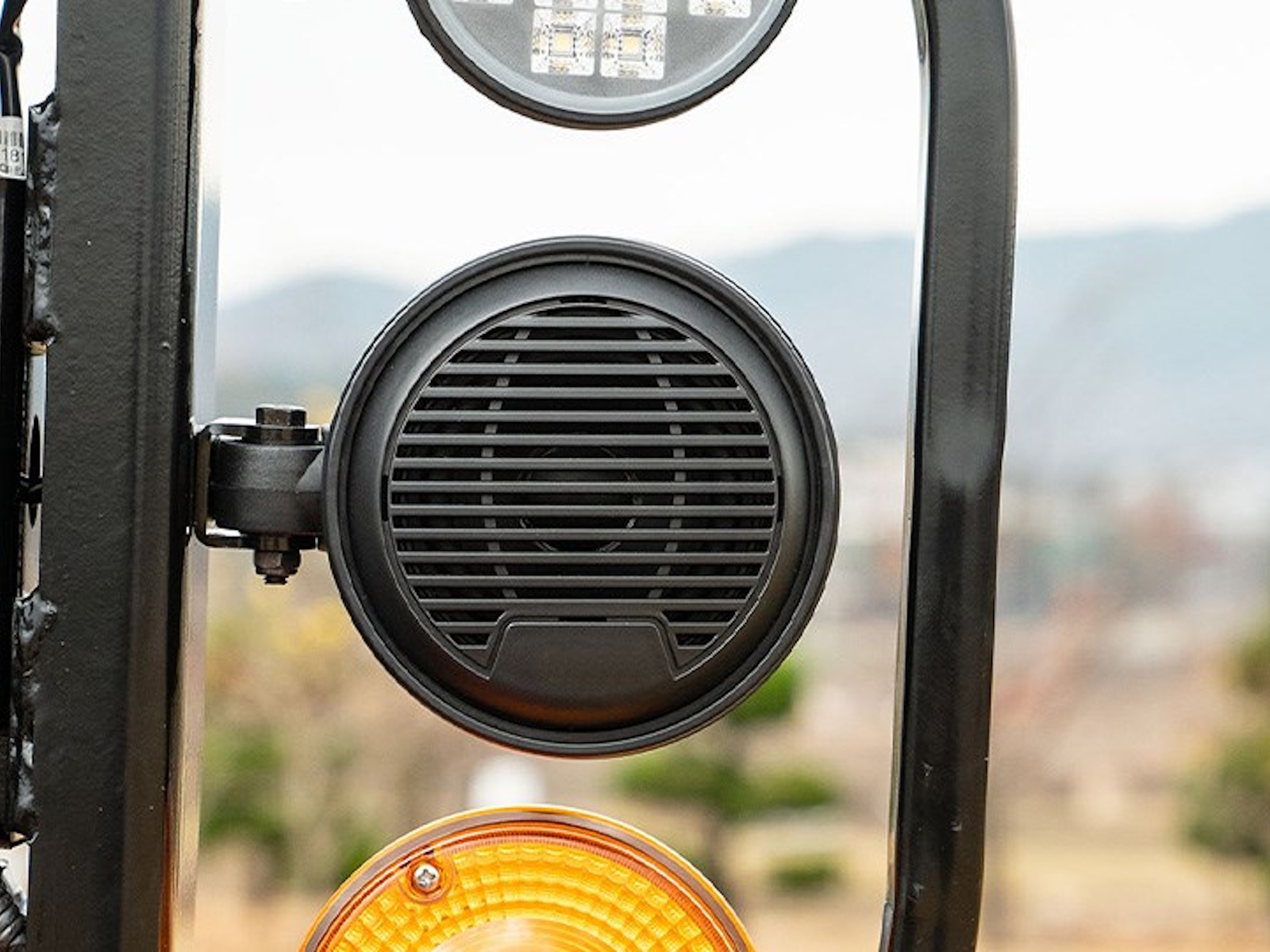 - Attached to the right and left verticals on the foldable ROPS structure, this tractor features a modular system with three slots for lights, work lamps, and speakers. Based on operator preference and working conditions, more speakers and lamps can be attached. This brings operators comfort and security in daylight or at night.