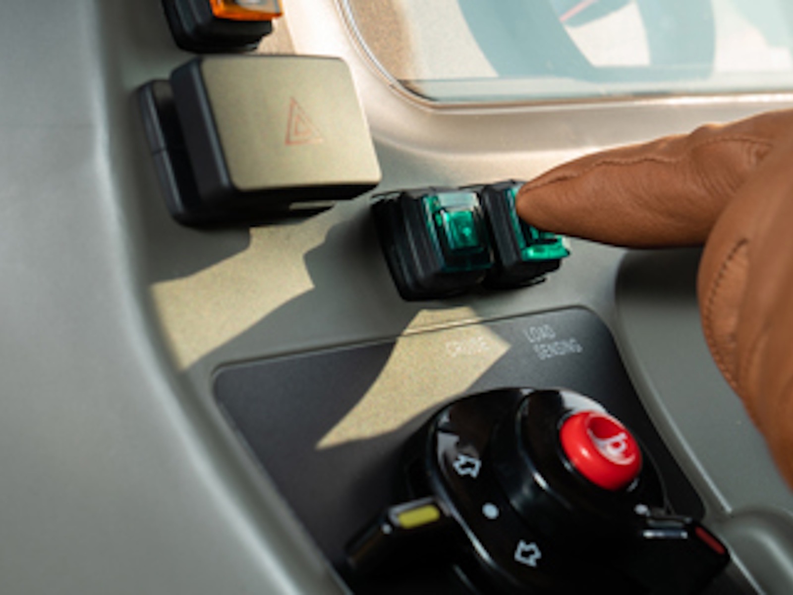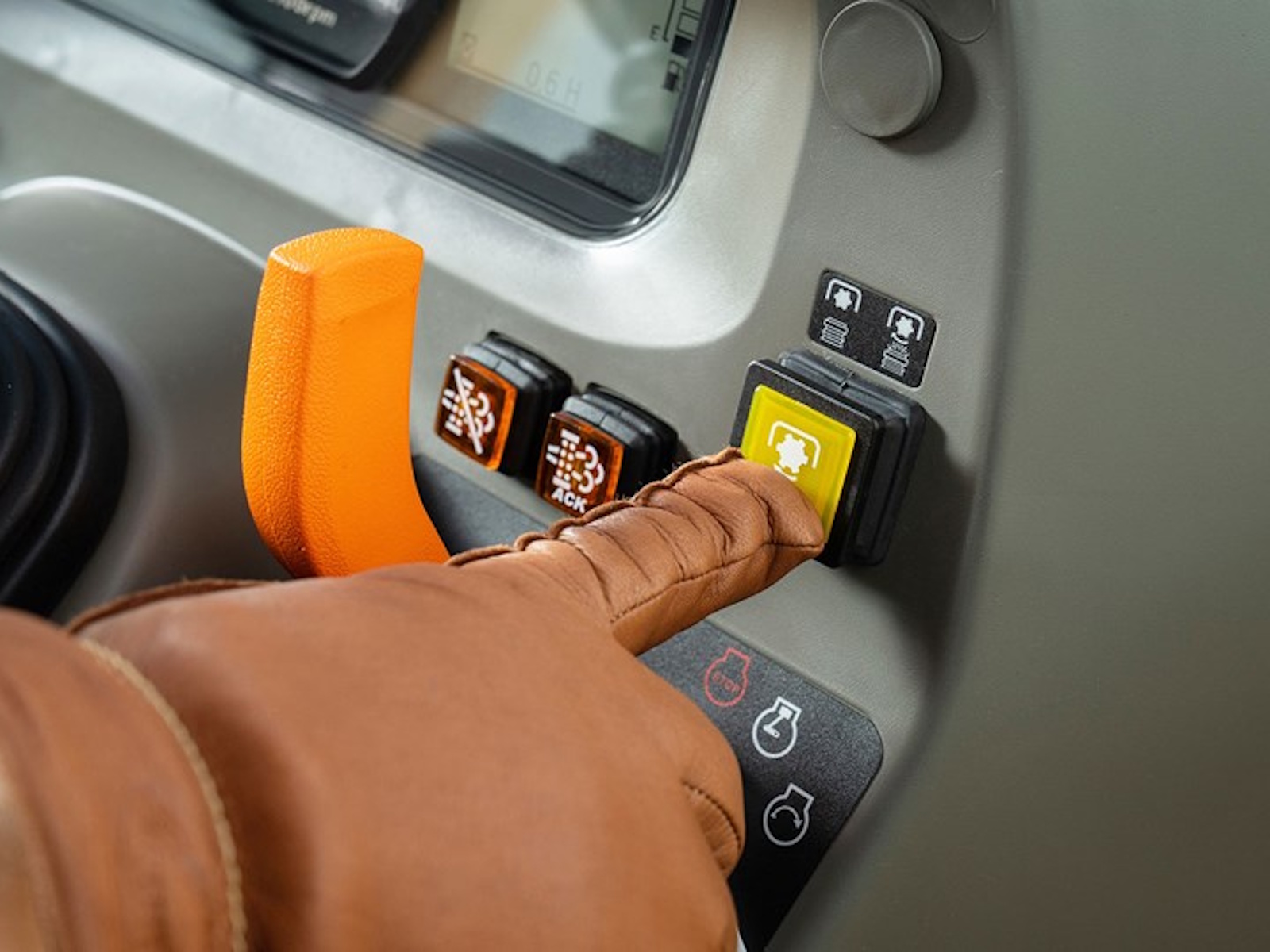 • Activate core functions such as the PTO on/off switch easily from the main console. Quickly receive alerts and diagnostic information via the digital display. The operator platform features a spacious and ergonomic seat and a flat floor with a rubber mat to enhance comfort during entry, exit, and driving.