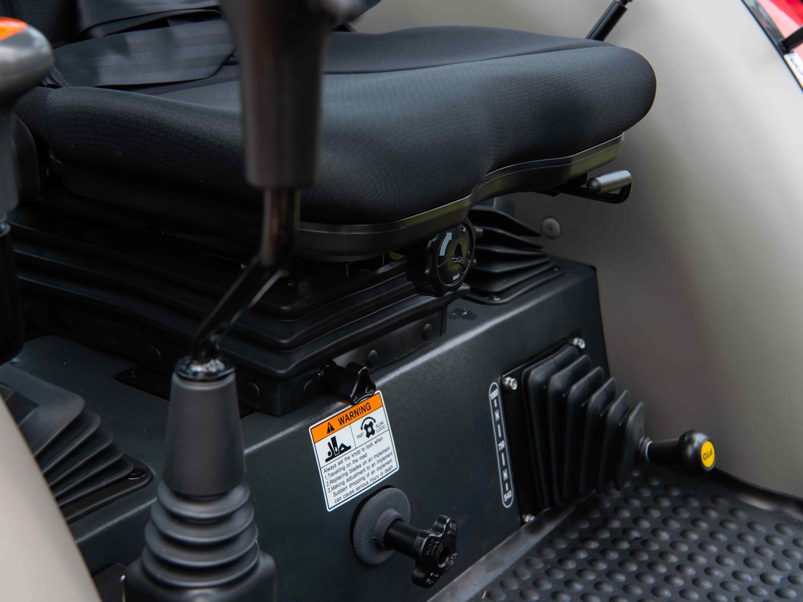 - Activate core functions such as the PTO on/off switch easily from the main console. Quickly receive alerts and diagnostic information via the digital display. The operator platform features a spacious and ergonomic seat and a flat floor with a rubber mat to enhance comfort during entry, exit, and driving.