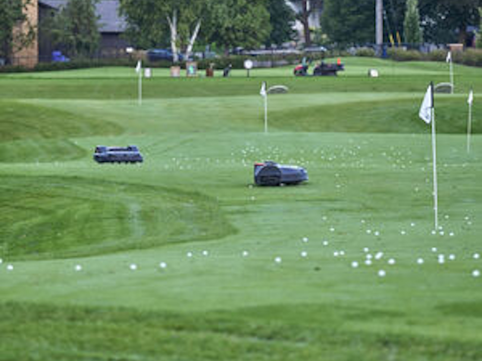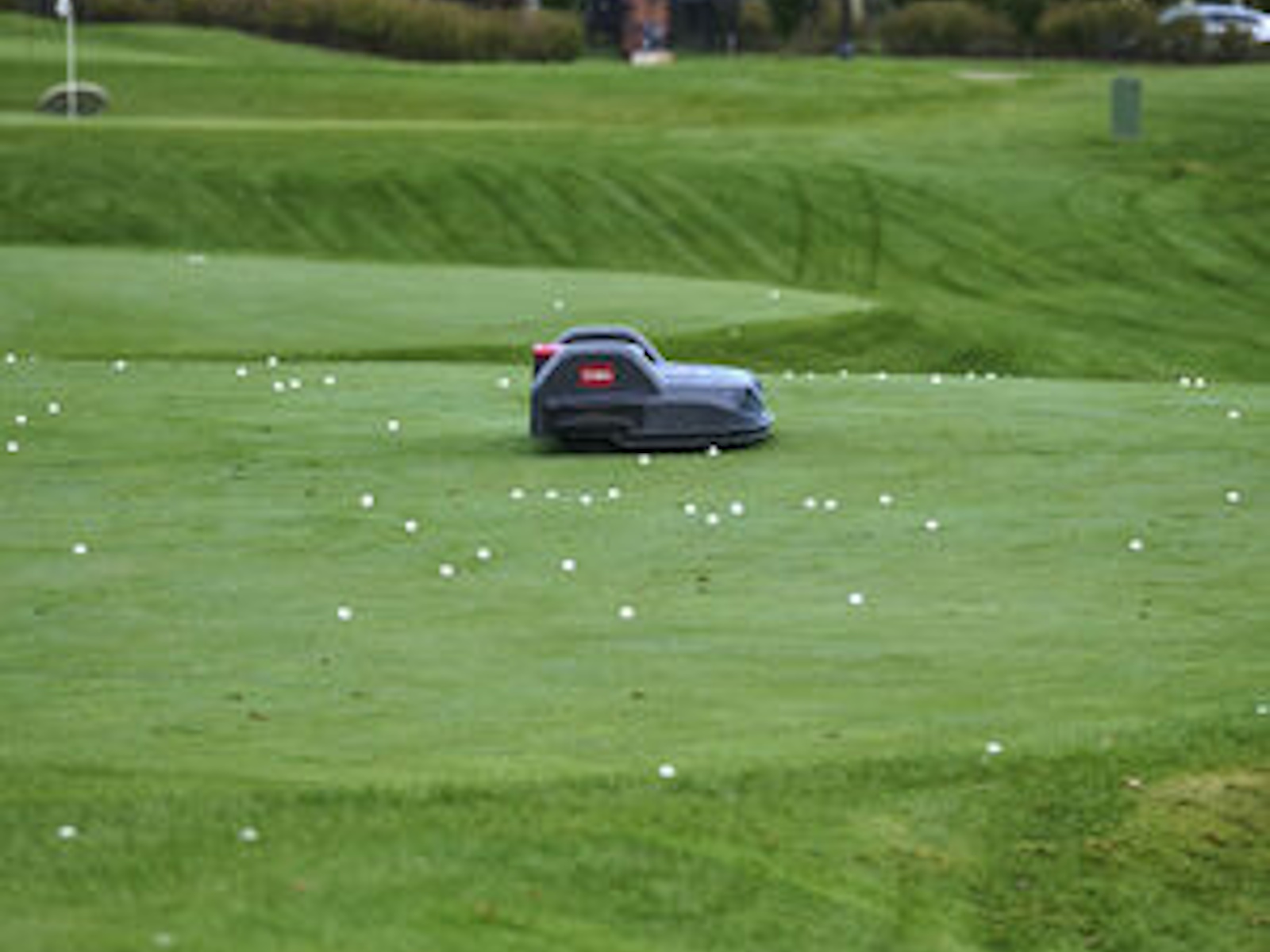 The all-electric, autonomous range picker is self charging and automatically returns to it's charging station.