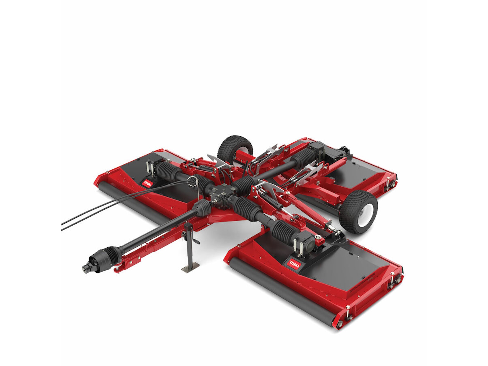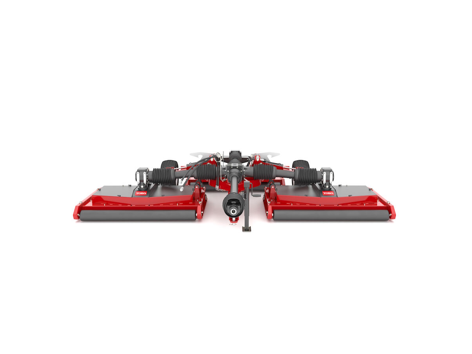 - The Toro bi-directional impact absorption system absorbs impacts up to 5 mph, allowing the deck to rotate and protecting the mowing decks and main frame from damage, thus enhancing productivity