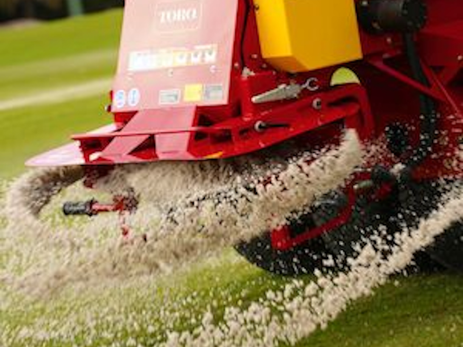 - The spinners are fixed at a downward angle of 4° to provide accurate and consistent penetration of material into the turf canopy.