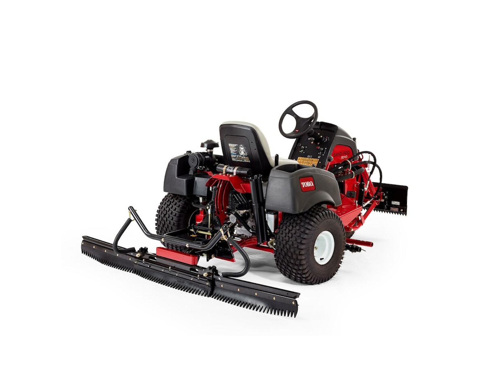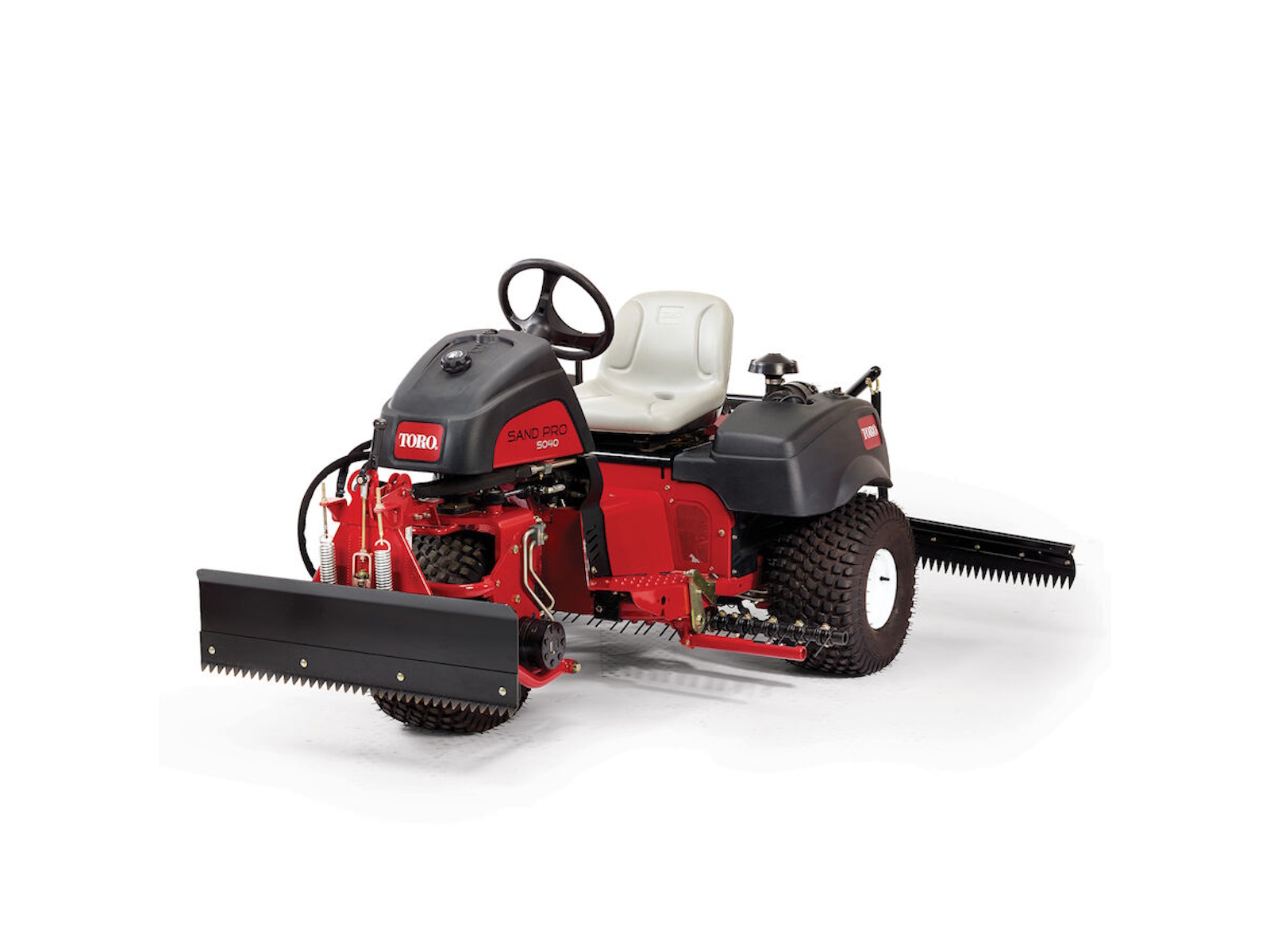 The Sand Pro® 5040 is the definition of versatility and function. The Quick Attach System™ (QAS) for front, mid and rear attachments allows for under-a-minute attachment changes. With a powerful 18 hp (13.4 kW) engine and hydraulic power steering, be more productive with over 20 attachments, including the Flex Blade which raises and lowers hydraulically. Each attachment was specifically designed to take the operator influence out of the equation for high performance and a consistent surface finish.