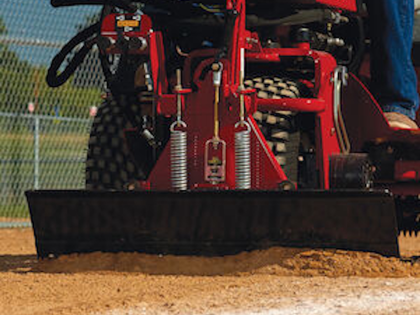 With the mid-mount system, a flex mounted toolbar can be adjusted to flex backwards when it comes in contact with anything from rocks or other rigid objects to prevent gouging or wash boarding. Multiple locking depth settings to ensure consistent depth of scarification from day to day or between operators. A mid-mount leveling system is also available to make quick work of the difficult projects like around dugouts or player positions.
