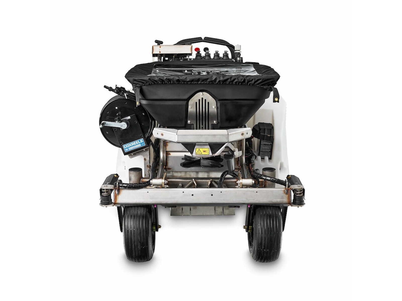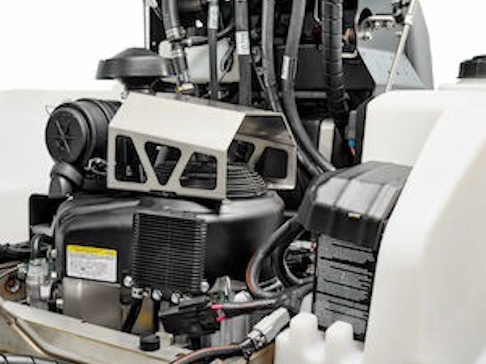 The new design allows for spray tanks and engine to be lower resulting in increased balance and stability and less turf tear up.