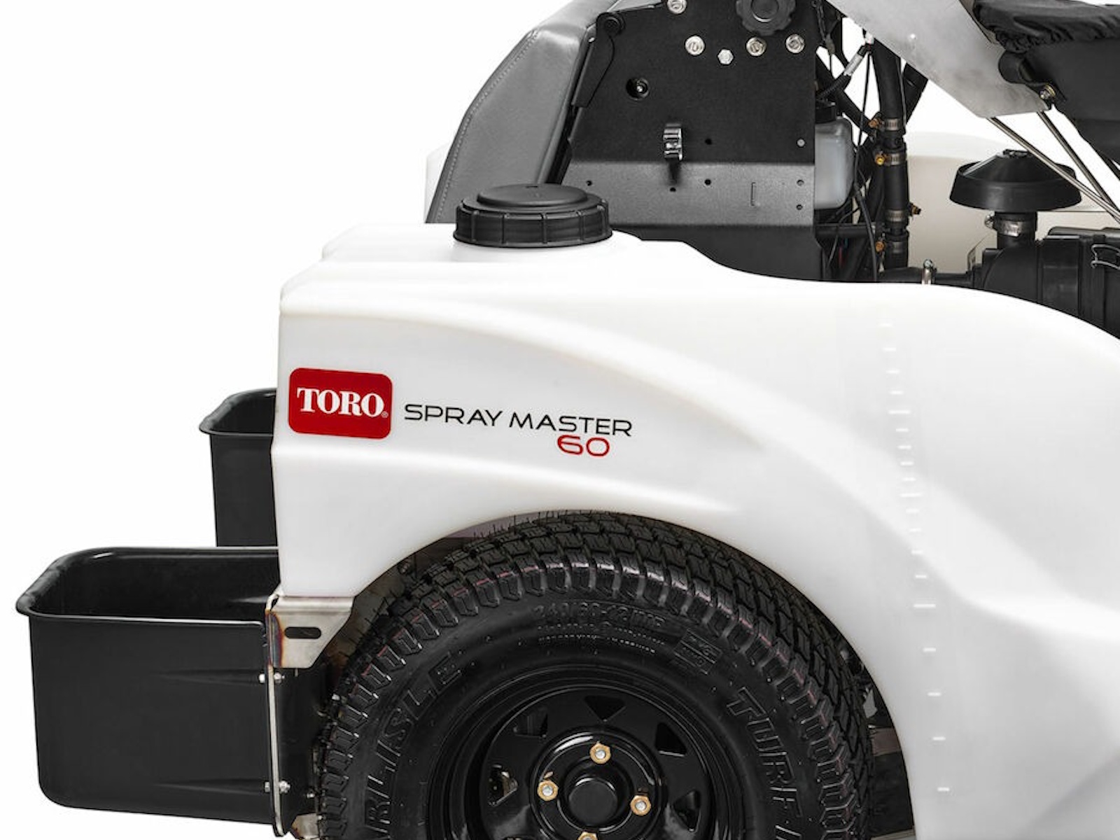 The new design allows for spray tanks and engine to be lower resulting in increased balance and stability and less turf tear up.