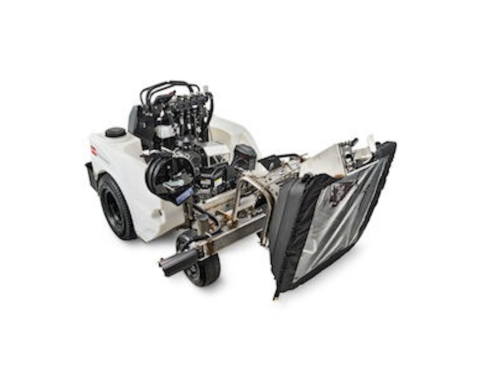 The new design allows for spray tanks and engine to be lower resulting in increased balance and stability and less turf tear up.