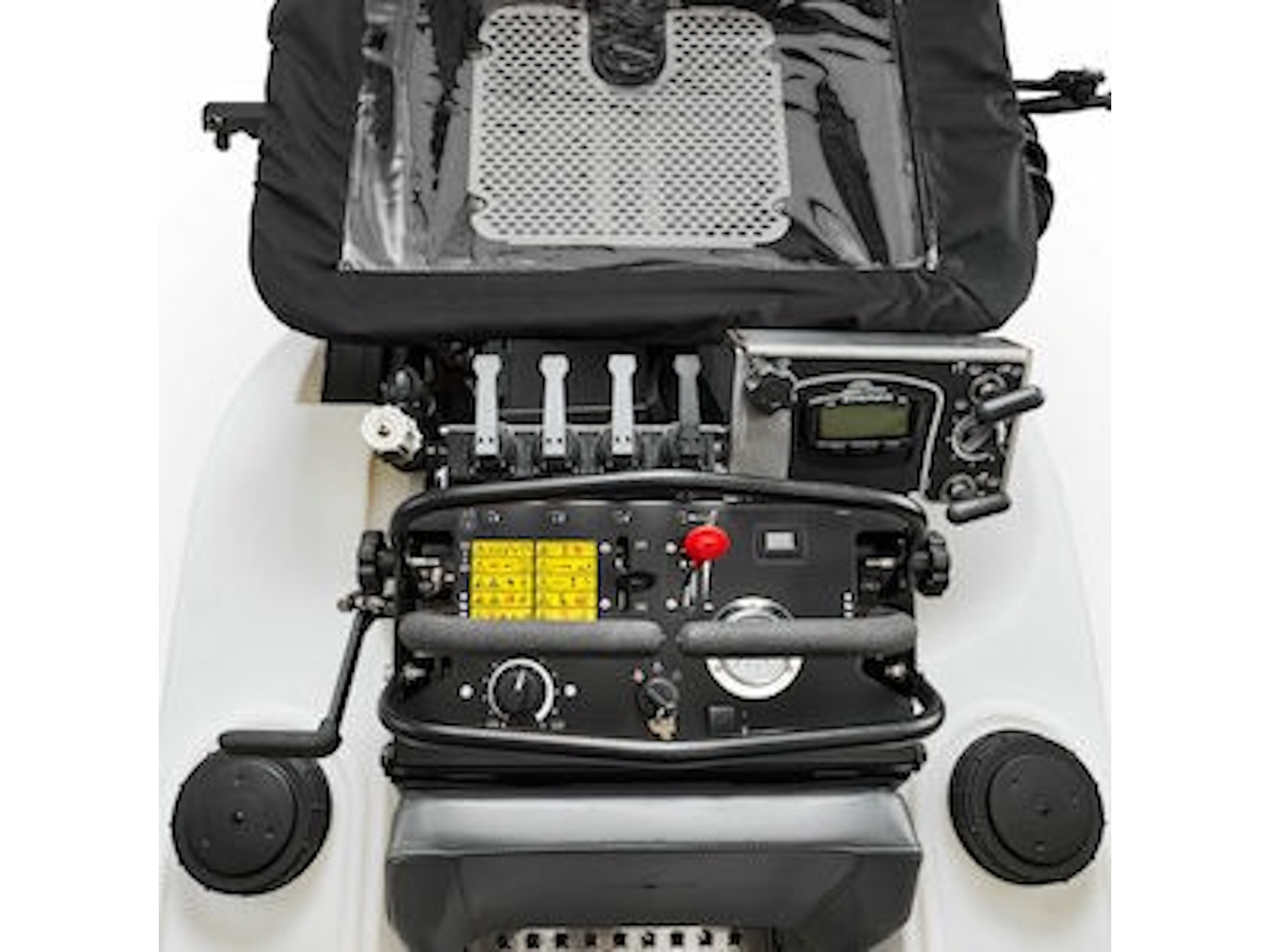 Ride in comfort and reduce operator fatigue with the large stainless steel operator platform with rubber compression, isolation mounts and a larger padded knee bolster.