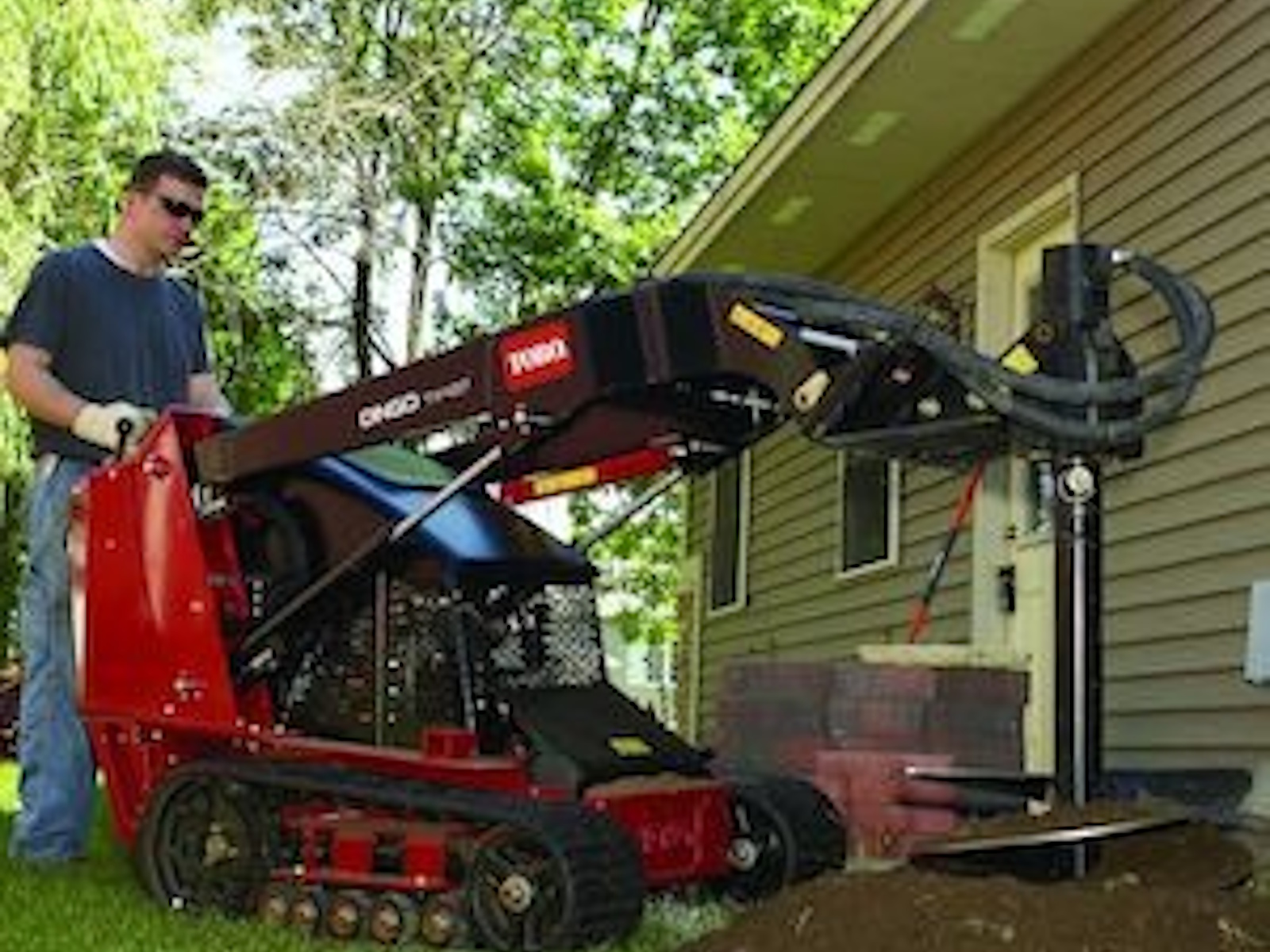 The original tracked compact utility loaders, the Toro® Dingo TX 427 delivers durability and reliability pros and do-it-yourselfers trust, combined with powerful performance and incredible versatility. For operators who are frequently switching tasks or moving things out of the way, these walk-behind models provide greater productivity due to the ability to walk up to the machine and go. In addition, with a walk-behind Dingo, operators don't feel the bumps when going over rough terrain.