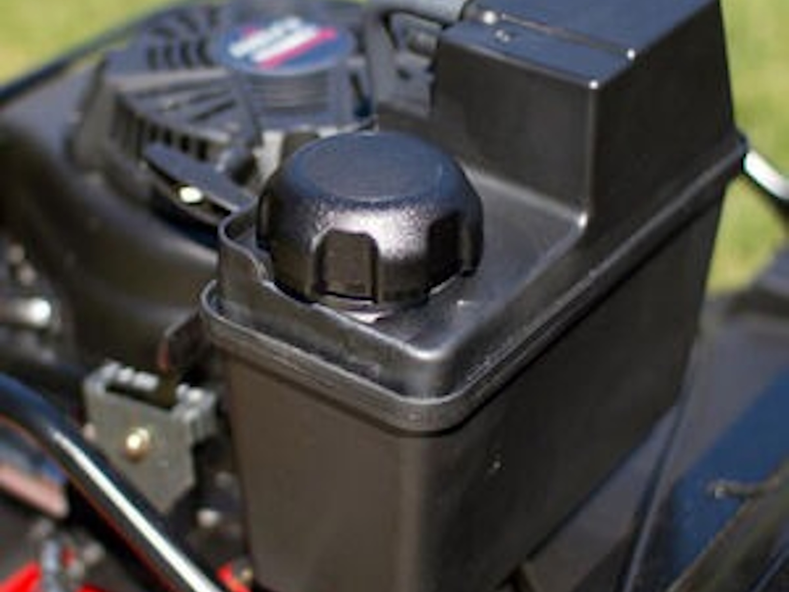 A larger gas tank means longer mowing time between refueling.