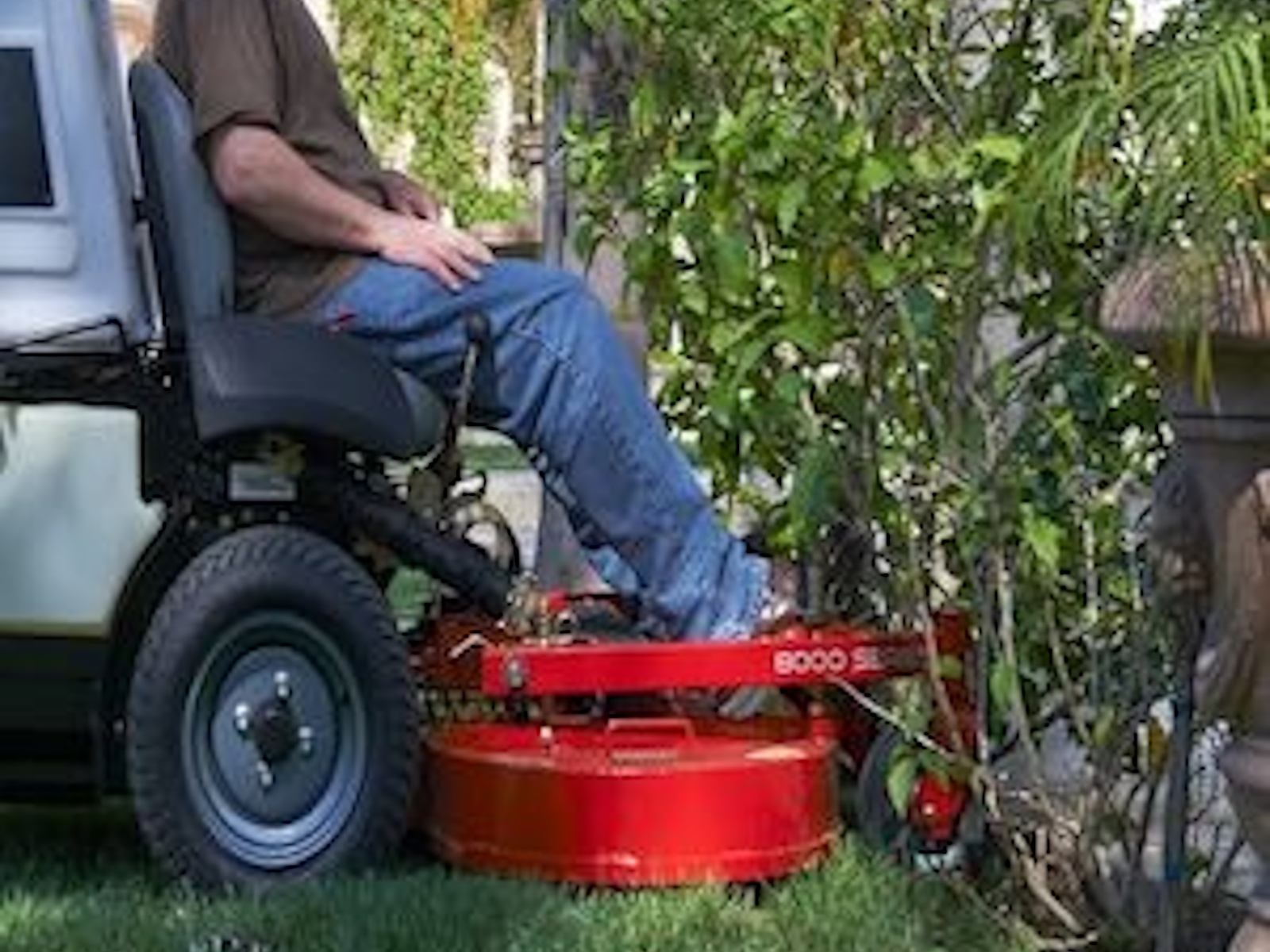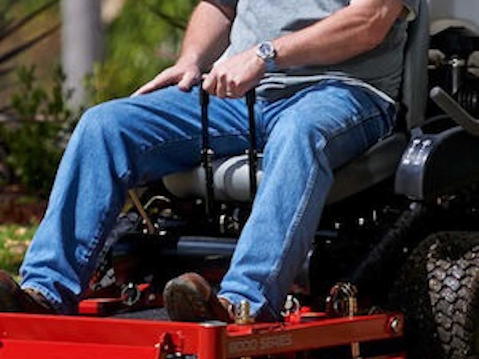 The out-front deck design allows for more maneuverability and mowing in tighter areas where traditional zero turns can't get to.