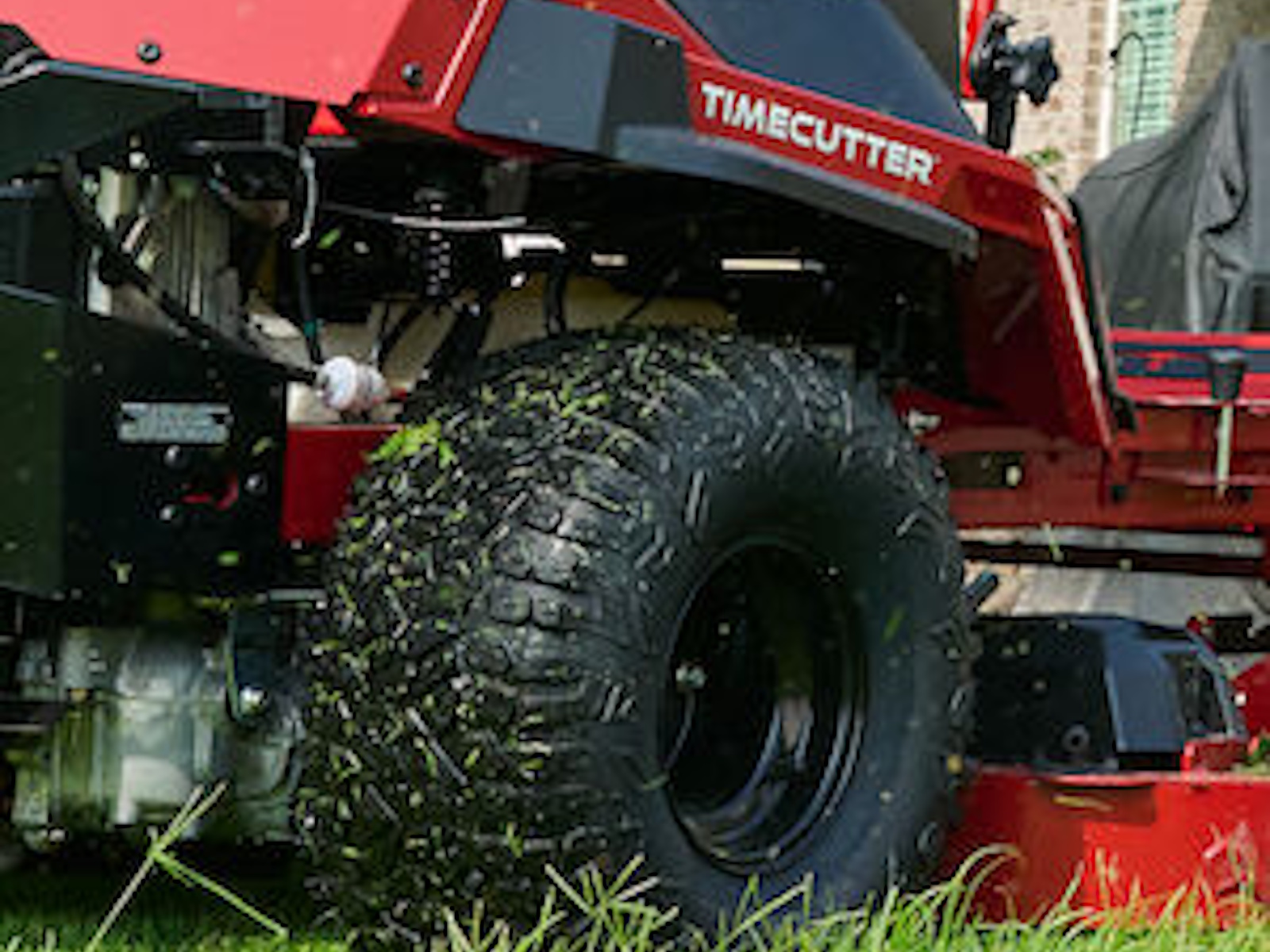 - Beefy hybrid-tread rear tires give you maximum traction without tearing up your turf.