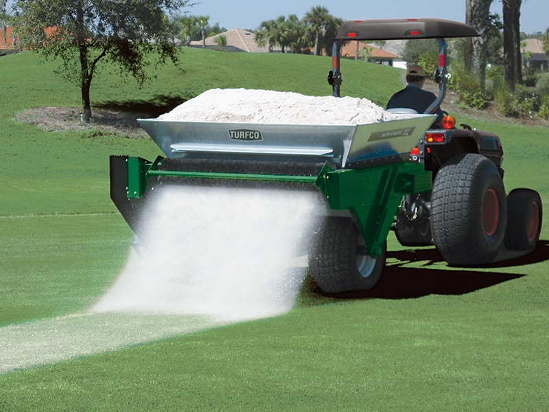 Turfco Mete-R-Matic topdressers, featuring a patented Chevron® belt, are the first and only to ensure uniform application of all types of materials and varying levels of moisture content, including wet sand. You can consistently apply a wide variety of topdressing mixtures such as sand, organic and inorganic compost, peat and humus, rye grass, as well as crumb rubbers, gypsum, lime and calcine clays.